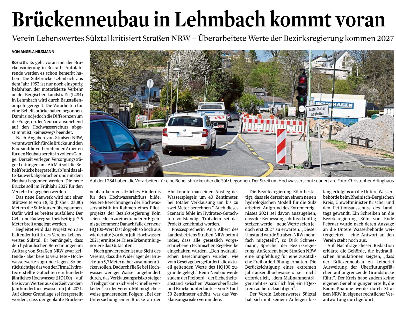 Begleitet wird das Projekt von anhaltender Kritik des Vereins Lebenswertes Sülztal. Er bemängelt, dass den hydraulischen Berechnungen im Auftrag von Straßen NRW zwar geltende – aber bereits veraltete – Hochwasserwerte zugrunde lägen …“